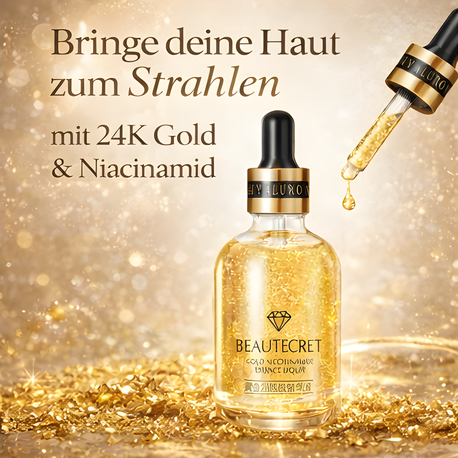 Das Aurique 24K Glow Set wurde entwickelt, um genau hier anzusetzen. Es kombiniert die Kraft von 24-karätigem Gold mit der wissenschaftlich belegten Wirkung von Niacinamid – einem der wirksamsten Inhaltsstoffe zur Verbesserung der Hautstruktur und des Hauttons. Studien zeigen, dass Niacinamid die Hautelastizität erhöht, Pigmentflecken reduziert und die Barrierefunktion stärkt. In Verbindung mit feuchtigkeitsspendenden Wirkstoffen hilft es der Haut, sich zu regenerieren und ihre natürliche Leuchtkraft wiederzugewinnen.